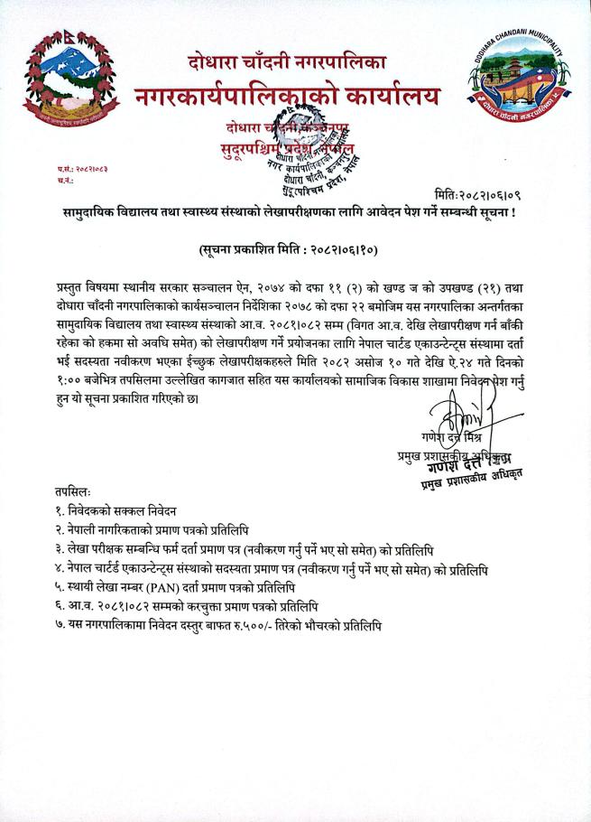 करारमा पदपूर्ति गर्ने सम्बन्धि सूचना ।